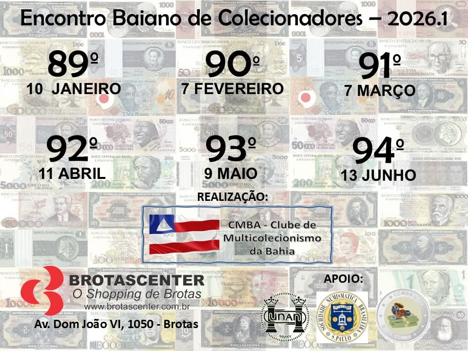 15/06 a 15/06/2019Encontro Baiano de Numismática e Multicolecionismo