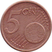 € 0,05 - 5 Cents de Euro![]() ![]() diâmetro: 21.25 mm | peso: 3.92 g |