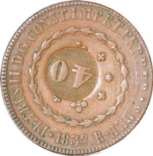 D. Pedro II, 1º. Sistema Monetário - Cobre COM Carimbo