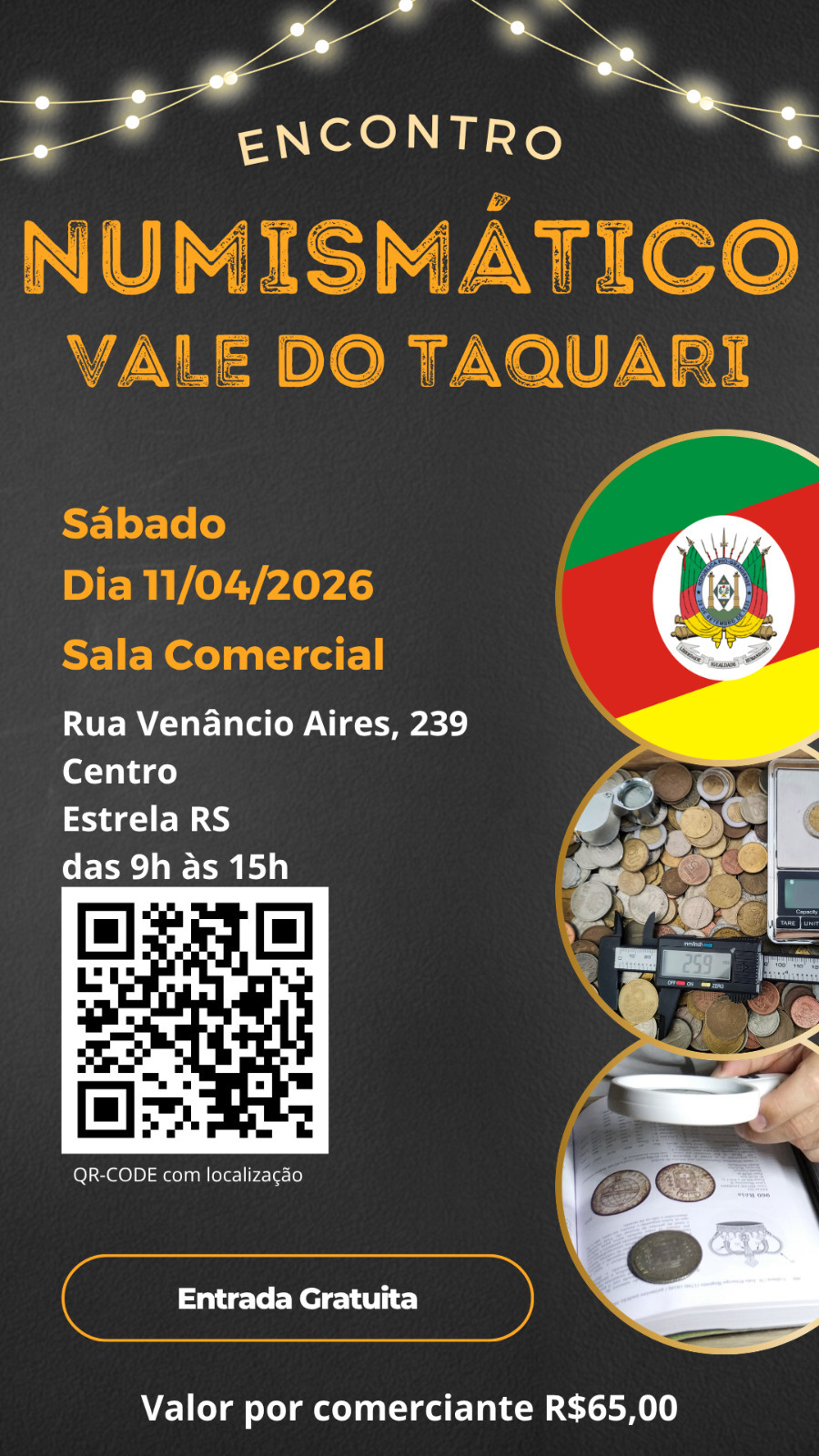 ![]() | Encontro Numismático Vale do Taquari Estrela-RS Brasil 11/04 a 11/04/2026 |