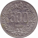 N$ 500,00 - 500 Novos Pesos ![]() ![]() diâmetro: 29.00 mm peso: 11.78 g |