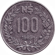 N$ 100,00 - 100 Novos Pesos ![]() ![]() diâmetro: 25.00 mm peso: 7.00 g |